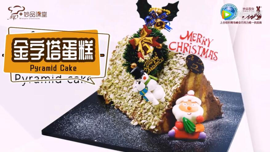 妙品课堂之金字塔蛋糕也叫巧克力圣诞屋蛋糕,用到妙缘软质巧克力酱和哥兰夫巧克力碎片,圣诞主题装饰,外表美观,口感丰富。