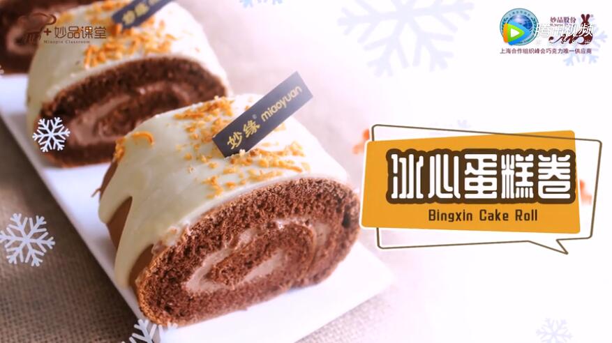 妙品课堂之冰心蛋糕卷制作教程,运用到妙缘软质巧克力酱、妙缘巧克力烘焙直用酱,可口风味好,口味佳。
